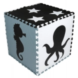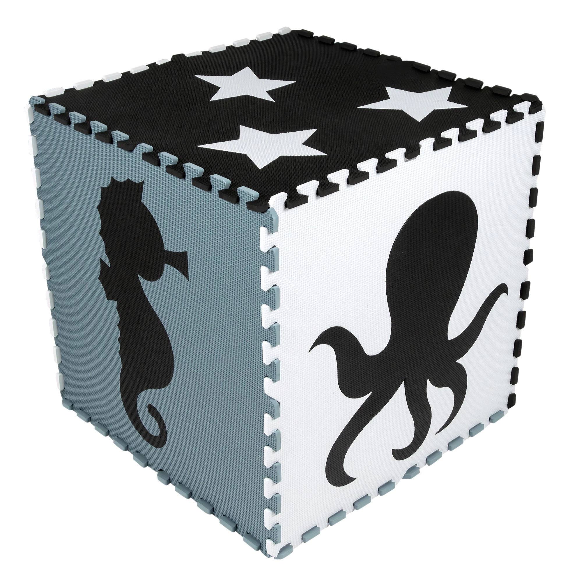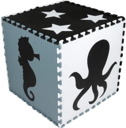 I colori neutri e rilassanti non distraggono i bambini durante il gioco e si integrano facilmente in qualsiasi ambiente: cameretta, area giochi o asilo. I pezzi centrali rimovibili con forme (cavalluccio marino, tartaruga, pesce, medusa, balena, polpo, delfino, stelle e granchio) supportano lo sviluppo della motricità e l’apprendimento degli animali. Gli elementi possono essere ampliati (all’interno dello stesso modello) e assemblati in un cubo o in altre forme 3D.