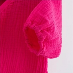 La mussola è considerata uno dei tessuti più morbidi e puri. È resistente, sopporta senza problemi i lavaggi ripetuti e con il tempo diventa ancora più morbida e piacevole al tatto. Questo vestitino è quindi una scelta eccellente per la pelle sensibile dei bambini.