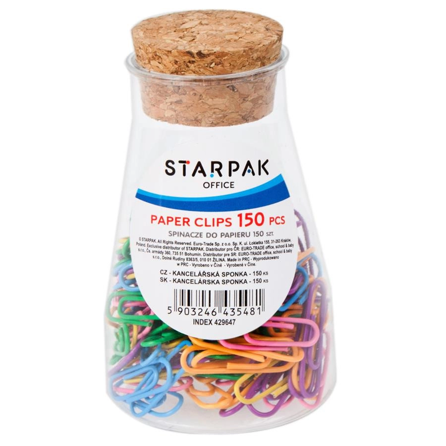 Pratico set di fermagli per ufficio in colori vivaci per un’organizzazione ordinata dei documenti. La confezione contiene 150 pezzi in un elegante barattolo con tappo in sughero. Ideale per ufficio, scuola e casa, resistenti e riutilizzabili.