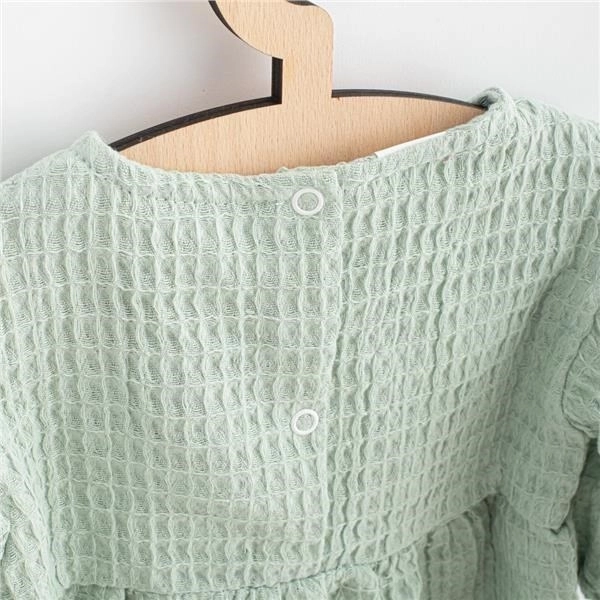 Abitino in mussola per bambini dallo stile moderno e confortevole, taglio oversize con maniche 3/4 e chiusura a bottoncini a pressione sul retro. Realizzato in mussola di alta qualità, traspirante e resistente per l’uso quotidiano e le occasioni speciali. Il morbido tessuto 100% cotone dalla bella texture è ideale per le giornate primaverili, autunnali e più fresche.