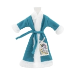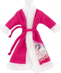 Accappatoio alla moda per bambole con superficie vellutata e morbida e cintura da annodare, perfetto dopo il bagnetto e durante i rituali serali. Disponibile in un mix di colori e motivi (es. unicorno), si abbina facilmente agli altri vestitini.