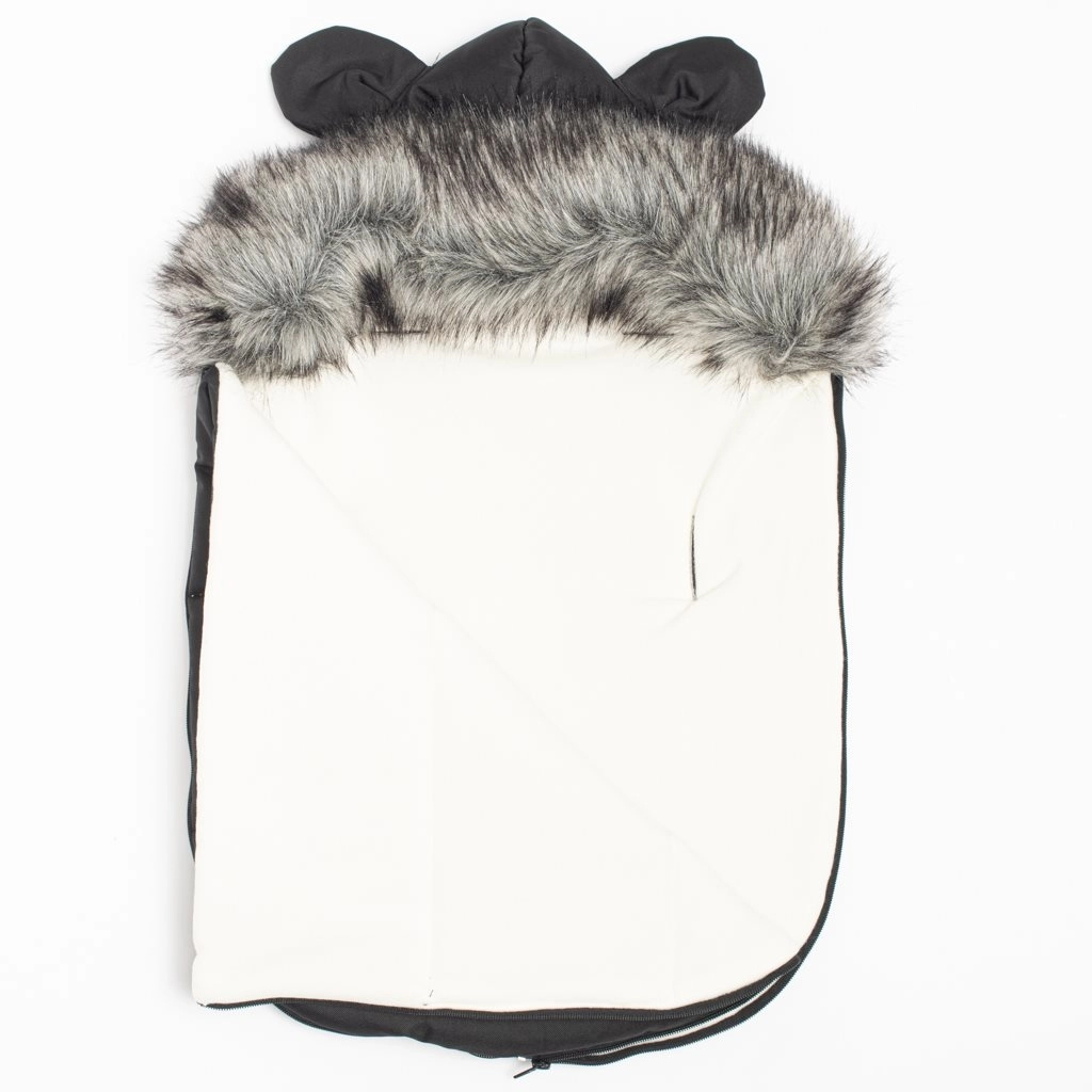 Grazie alle aperture pre-cucite per le cinture a 5 punti, il sacco è compatibile con la maggior parte dei passeggini e dei seggiolini auto. Le pratiche zip laterali semplificano l’uso e la pelliccia removibile sul cappuccio aggiunge stile e una protezione extra contro il freddo.