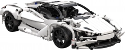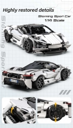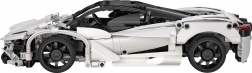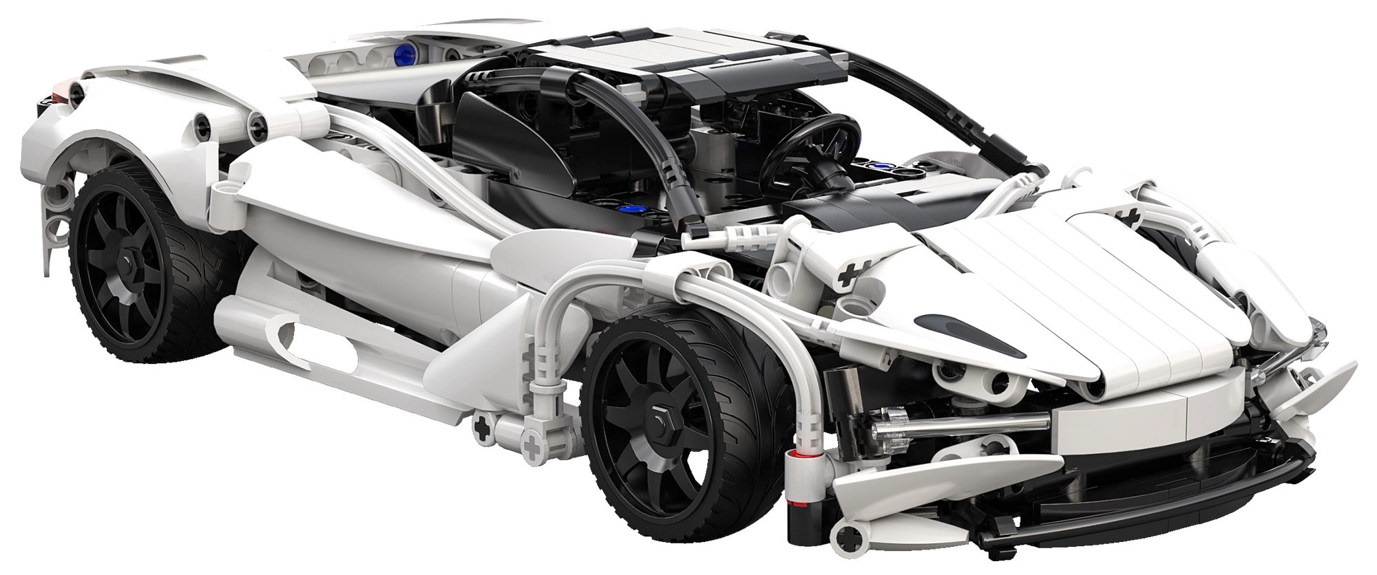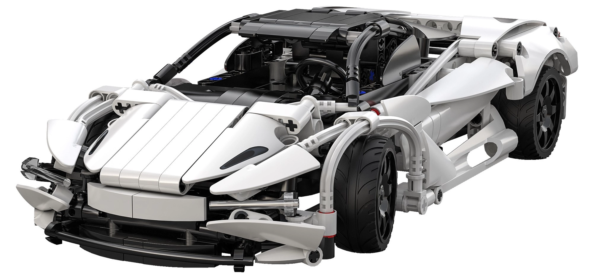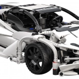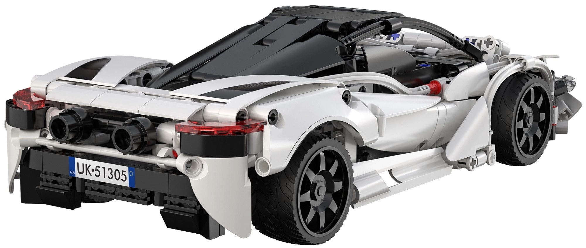 Carrozzeria bianca dettagliata con elementi neri, cofano apribile e ruote in gomma per un’ottima aderenza. Grande look e funzionalità.