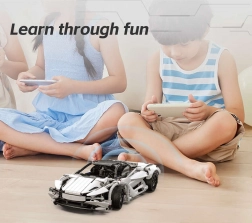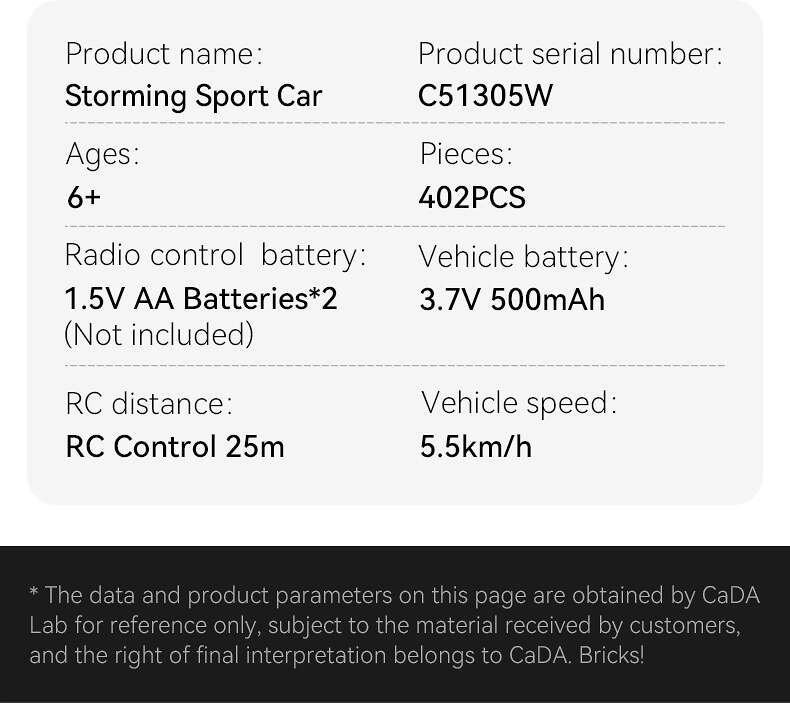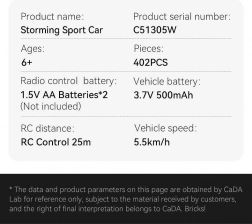 L’auto sportiva CaDA si distingue per proporzioni realistiche, struttura robusta e accattivante carrozzeria bianca con elementi neri. Grazie ai motori e allo sterzo preciso godi di una guida fluida avanti/indietro e di svolte accurate. Il Dual Mode permette di controllare il modello con il radiocomando classico o con lo smartphone via Bluetooth – divertimento in casa e all’aperto.