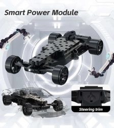 L’app offre 4 modalità di controllo (remote control, scratch programming, gyroscope control, path mode), così bambini e adulti possono provare un controllo intuitivo o programmabile. Le gomme in gomma assicurano buona aderenza su varie superfici e il cofano apribile sottolinea il carattere tecnico del kit.