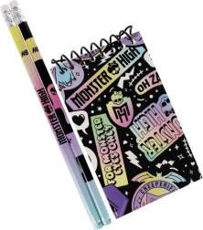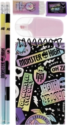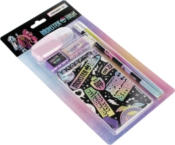 Il set scolastico completo con il popolare tema Monster High offre tutto ciò di cui i bambini hanno bisogno a scuola e in viaggio. Grazie al robusto taccuino a spirale, le pagine si sfogliano facilmente e sono pronte per appunti, idee e disegni. Il design pastello e le illustrazioni a tema stimolano la creatività e rendono lo studio più divertente.