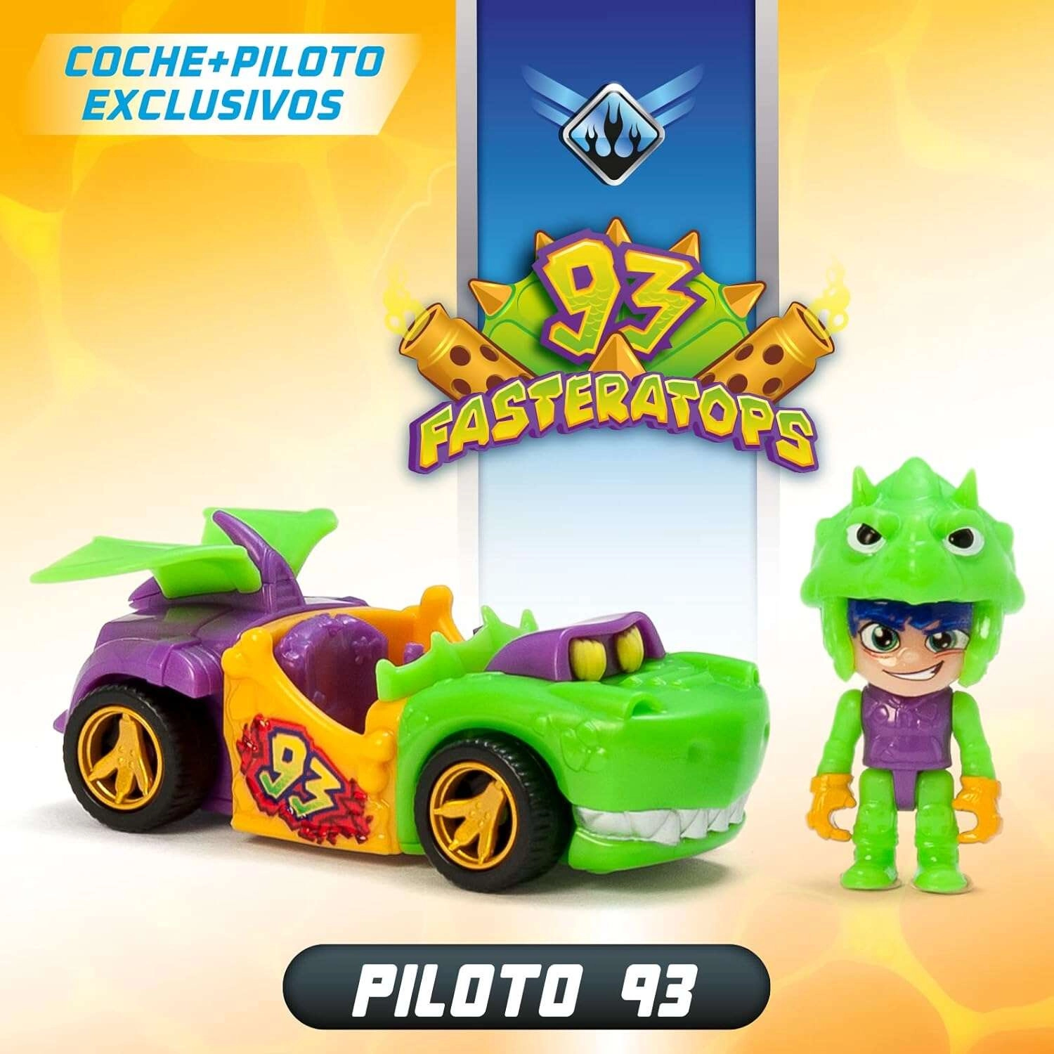 Il grande veicolo T‑Rex con lanciatore funzionante scaglia la piccola auto in gara in un istante. Non manca lo spazio per il pilota e le ruote scorrono liberamente per una guida fluida.