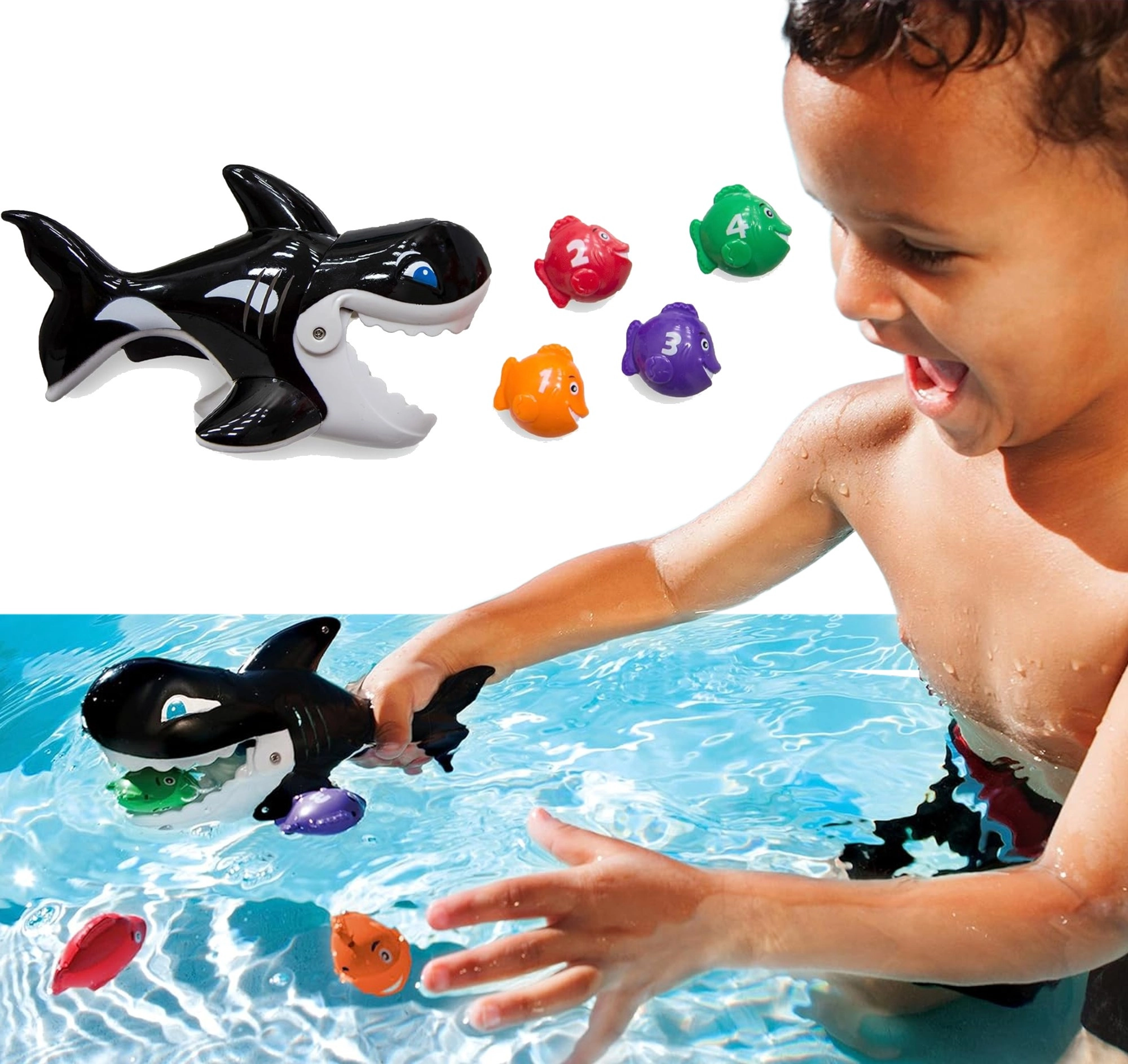 Scopri quanto è facile unire gioco e apprendimento. L’orca SwimWays apre la bocca premendo il grilletto, e i bambini possono catturare i pesciolini colorati e numerati. Questo giocattolo d’acqua interattivo sviluppa la coordinazione occhio–mano, favorisce l’apprendimento dei colori e dei primi numeri e motiva i bambini al movimento attivo in acqua.