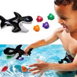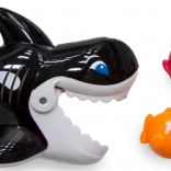 Premi il grilletto sull’impugnatura e la bocca dell’orca si apre per “ingoiare” i pesciolini galleggianti. Ideale per allenare coordinazione e precisione.
