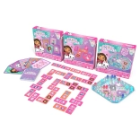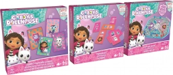 Scopri tre popolari giochi di famiglia in un’unica confezione con i motivi della serie La casetta di Gabby. I bambini si divertiranno ad allineare le immagini nel domino, a una gara avvincente sulla plancia in plastica con dado sotto cupola Pop-Up e a giocare con le carte jumbo di grande formato.
