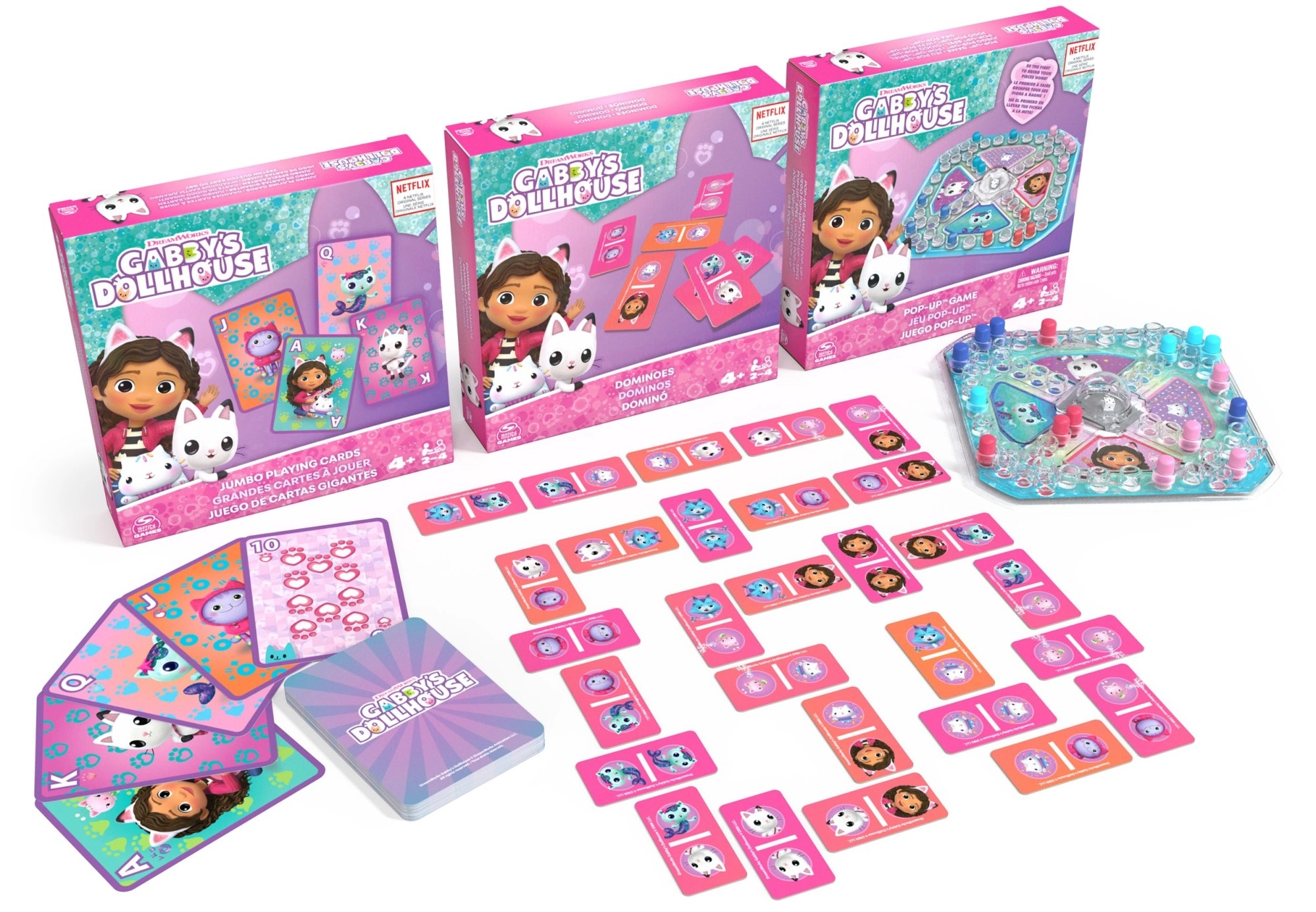 Il divertente set di giochi La casetta di Gabby 3 in 1 include domino, gioco da tavolo pop-up e carte jumbo in un’unica confezione. Ideale per bambini dai 4 anni, sviluppa memoria, concentrazione e coordinazione e offre coloratissimi motivi dei personaggi preferiti di GABBY’S DOLLHOUSE.