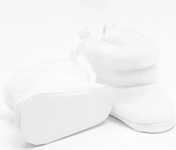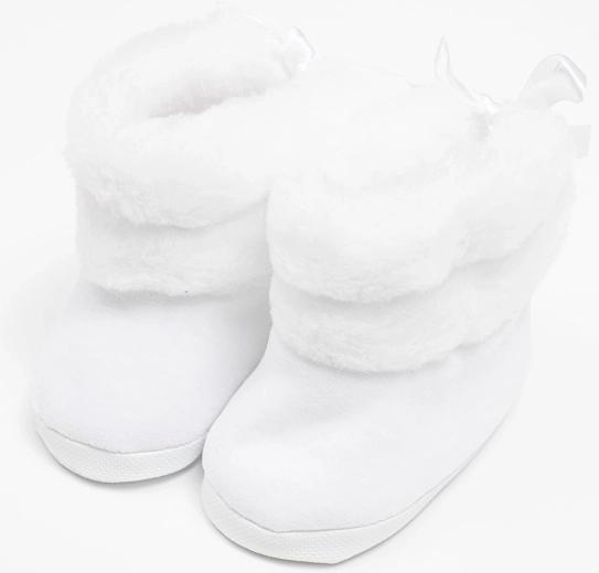 Le scarpine hanno un ampio spazio interno per il naturale movimento delle dita e dei muscoli. La sottile suola sintetica (non destinata alla camminata) aiuta a mantenere il calore e protegge i piedini nel passeggino o nel seggiolino auto. Fornite in una pratica confezione regalo, perfette anche come dono per neonati.