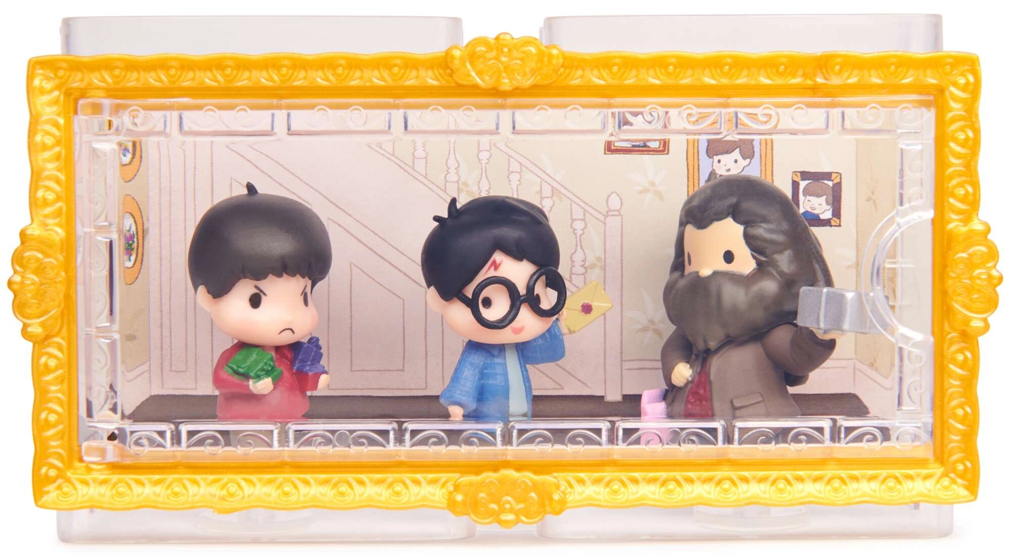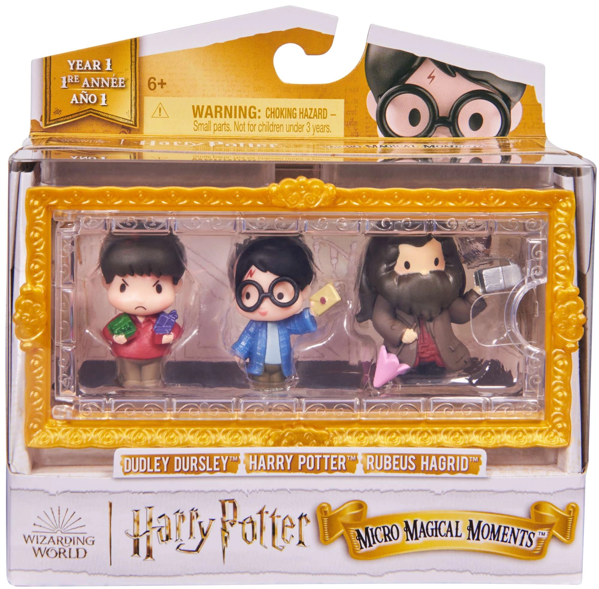 Scopri la magia della serie Micro Magical Moments e crea il tuo diorama in miniatura di Hogwarts. Le figure di Harry Potter, Rubeus Hagrid e Dudley Dursley sono inserite in una pratica custodia con finestra trasparente che le protegge e al contempo le espone con stile. Ogni personaggio ha accessori iconici – Hagrid con scatolina e ombrello, Harry con la lettera e Dudley con i suoi giocattoli.