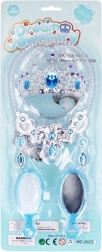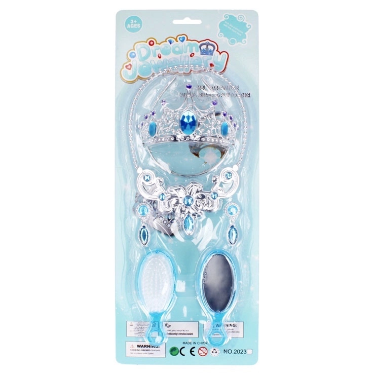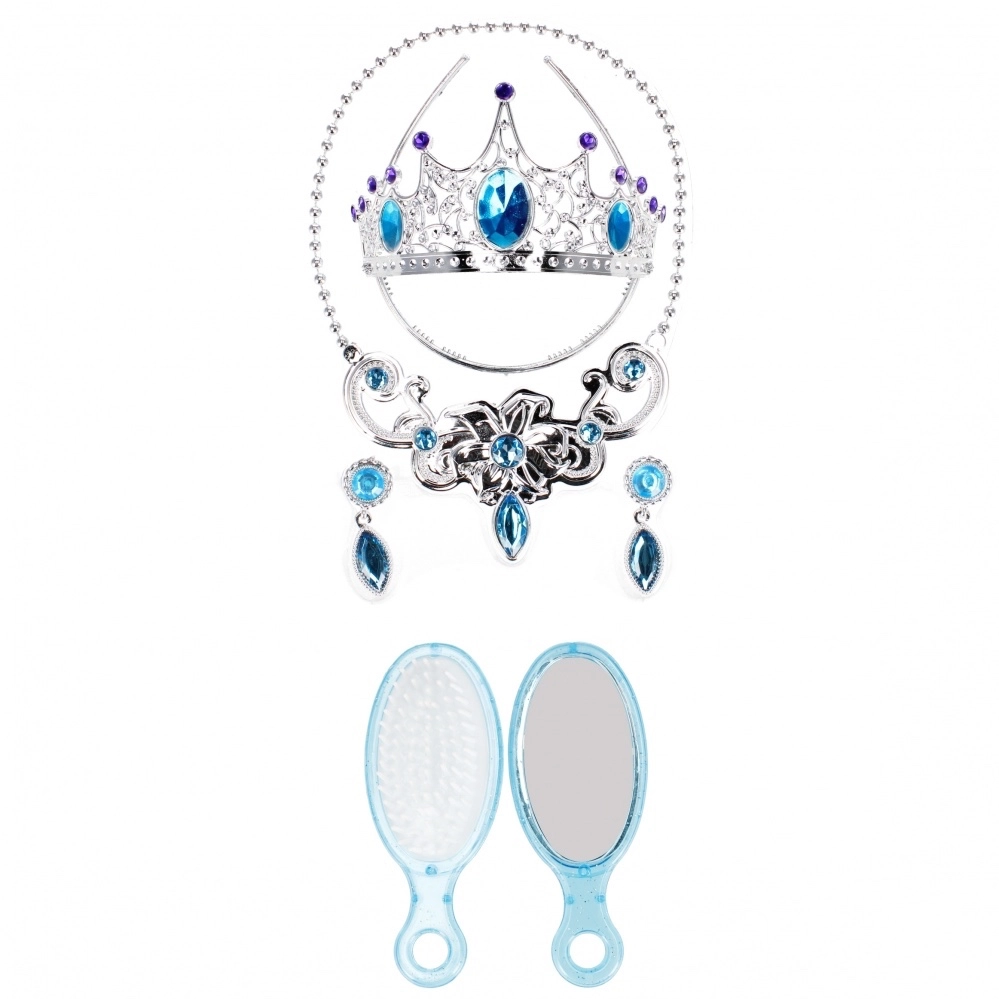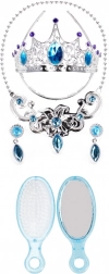 Trasforma il gioco quotidiano in un ballo incantato con questo set per una piccola principessa. Include un diadema argentato con pietrine blu e viola, una collana e orecchini scintillanti, oltre a una spazzola e a uno specchietto manuale per lo styling. La struttura in plastica leggera è ideale per i travestimenti dei bambini e stimola creatività e fantasia.