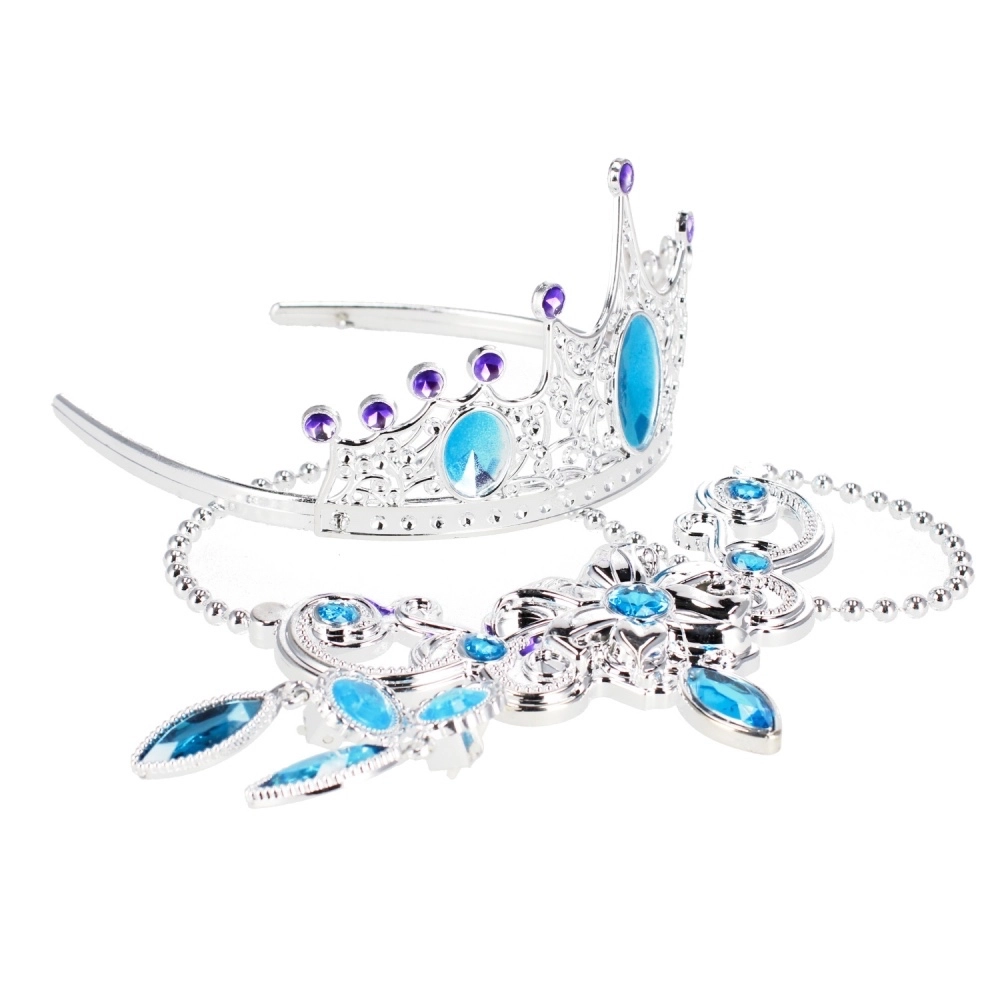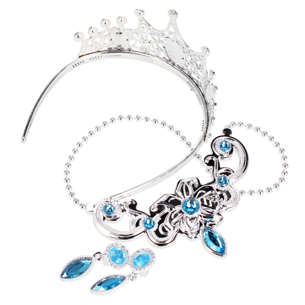 Set di gioielli con decorazioni filigranate e pietrine scintillanti che completano alla perfezione il costume della principessa di ghiaccio.