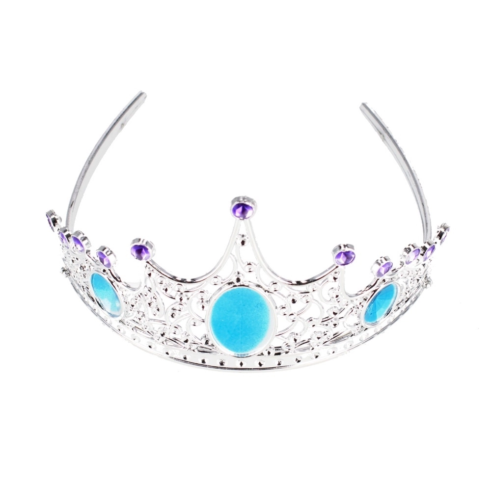 Il diadema argentato con pietrine blu e viola aggiunge un tocco regale a ogni travestimento e rimane comodo sulla testa.
