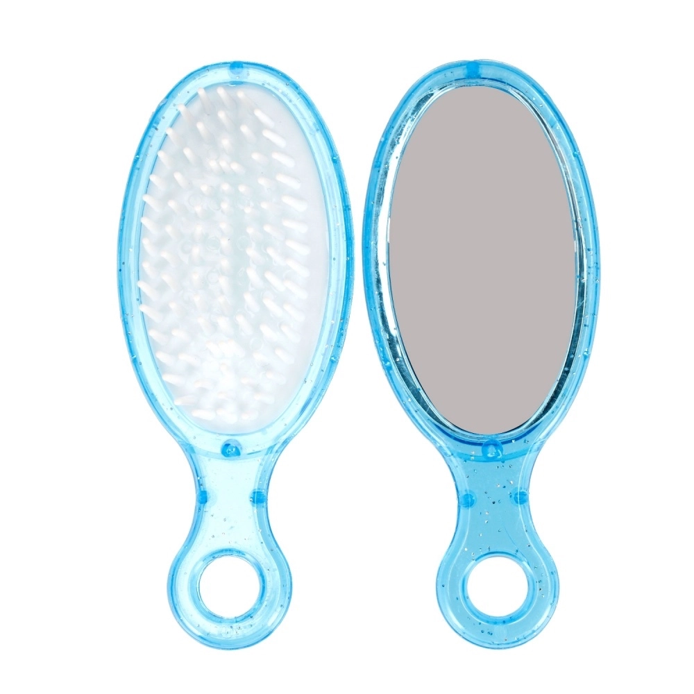 La leggera spazzola blu e il coordinato specchietto manuale permettono ai bambini di pettinare, sistemare e controllare le acconciature durante il gioco del salone di bellezza.