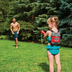 Lo zaino ad acqua per bambini ispirato al famoso cartone PAW Patrol offre ore di divertimento rinfrescante. Il solido serbatoio nel design rosso-grigio con il logo della serie è comodo da indossare grazie ai cinturini delle spalle regolabili. Basta riempirlo d’acqua, collegare il tubicino e, con la pompa manuale, sprigionare un potente getto d’acqua.