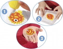 Ideale per sviluppare creatività, motricità fine e immaginazione. Grazie alle boccette facilmente comprimibili, ai colori vivaci e agli stampi riutilizzabili, creare è intuitivo e divertente. Il grande tappetino con tema luna park offre spazio per la vaschetta d’acqua, per riporre i gel e per esporre le creazioni finite.