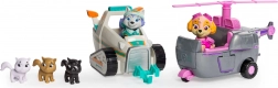 Parti per una missione di salvataggio con il set PAW Patrol con Skye ed Everest! Nella confezione trovi l’elicottero di Skye, la motoslitta da neve di Everest e 5 figure inclusi 3 adorabili gattini. I veicoli hanno rotore girevole, ruote e cingoli mobili e le figure dei cuccioli con testa articolata – ideale per il gioco creativo e avventuroso dai 3 anni in su.