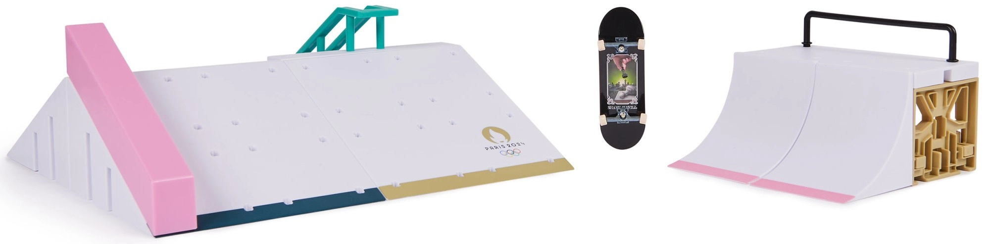 Il set di rampa per fingerboard Shane O'Neill – Paris 2024 del brand Spin Master offre un'esperienza di guida autentica in formato tascabile. La struttura in plastica robusta, le superfici lisce e il rail consentono grind fluidi, ollie e combinazioni di trick. È incluso un fingerboard colorato per iniziare subito.