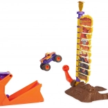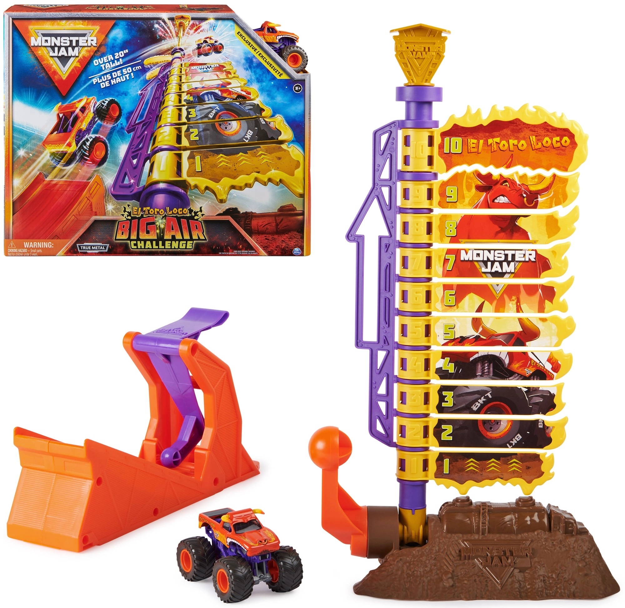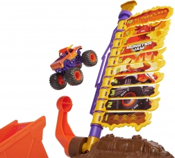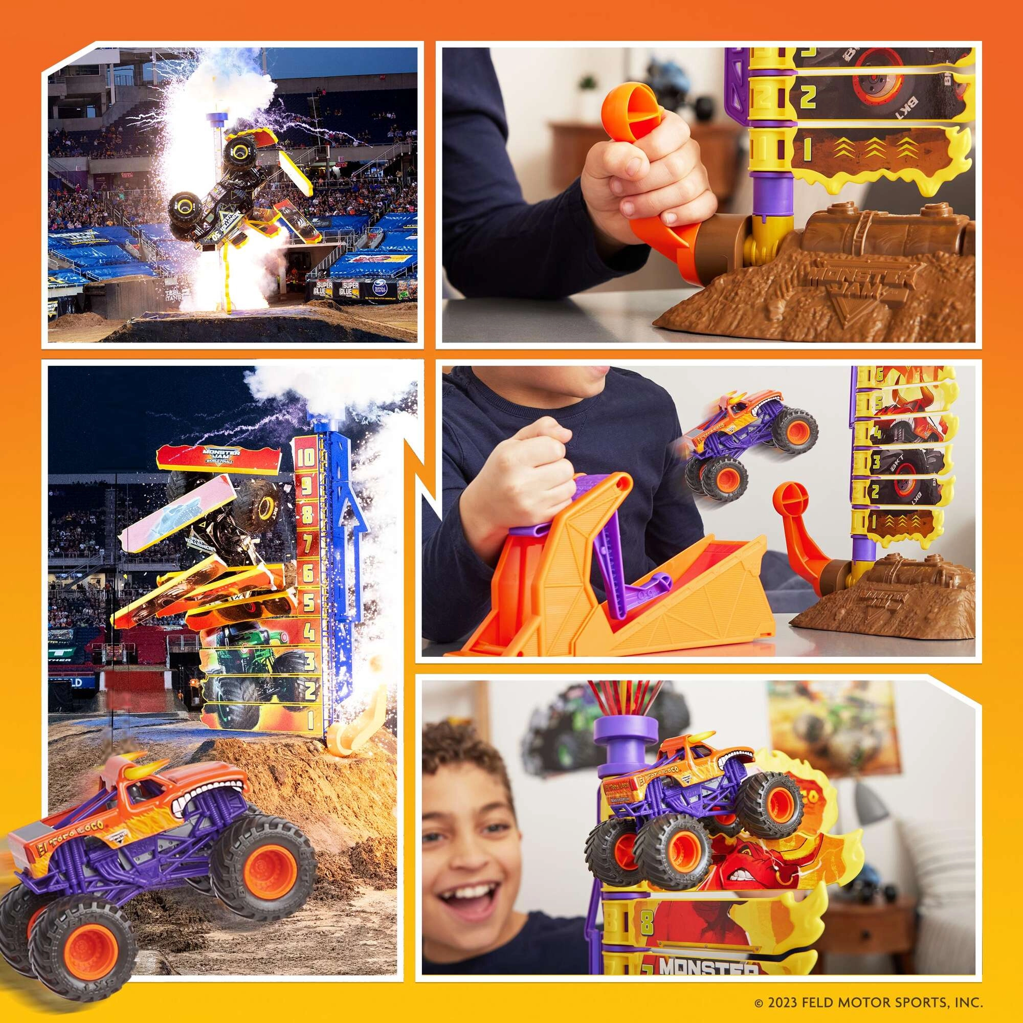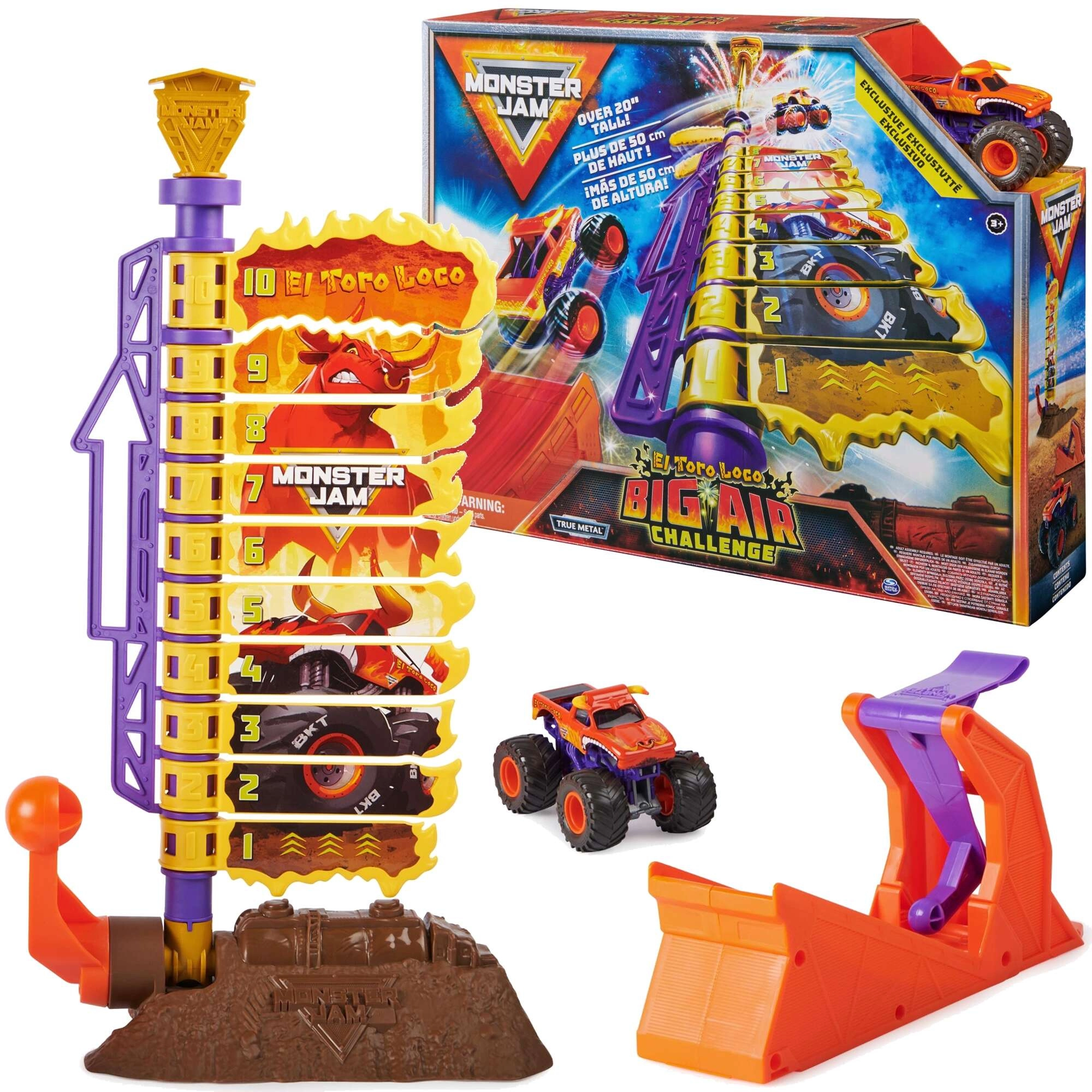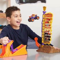 Il set è ideale per il gioco in solitaria o per sfide con gli amici. La struttura studiata con solida base in stile pista “dirt”, colori vivaci e autentiche grafiche Monster Jam enfatizzano il realismo. Il truck in scala 1:64 con pneumatici grandi e assetto alto gestisce senza problemi gli atterraggi e le ripartenze.