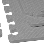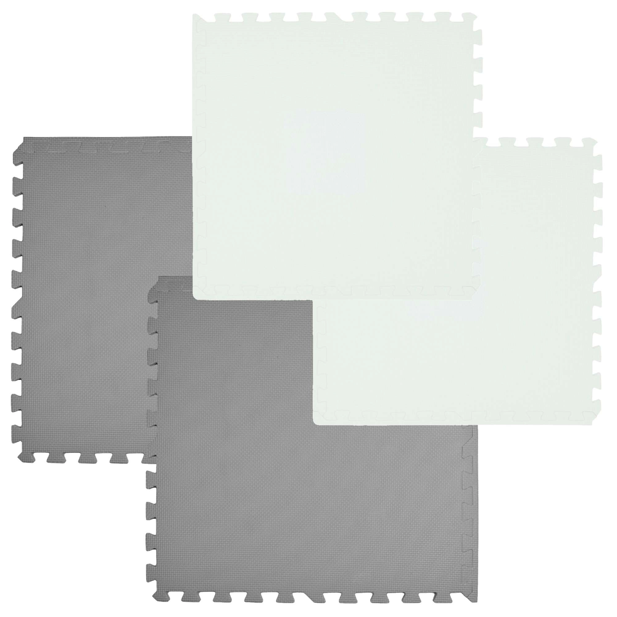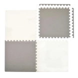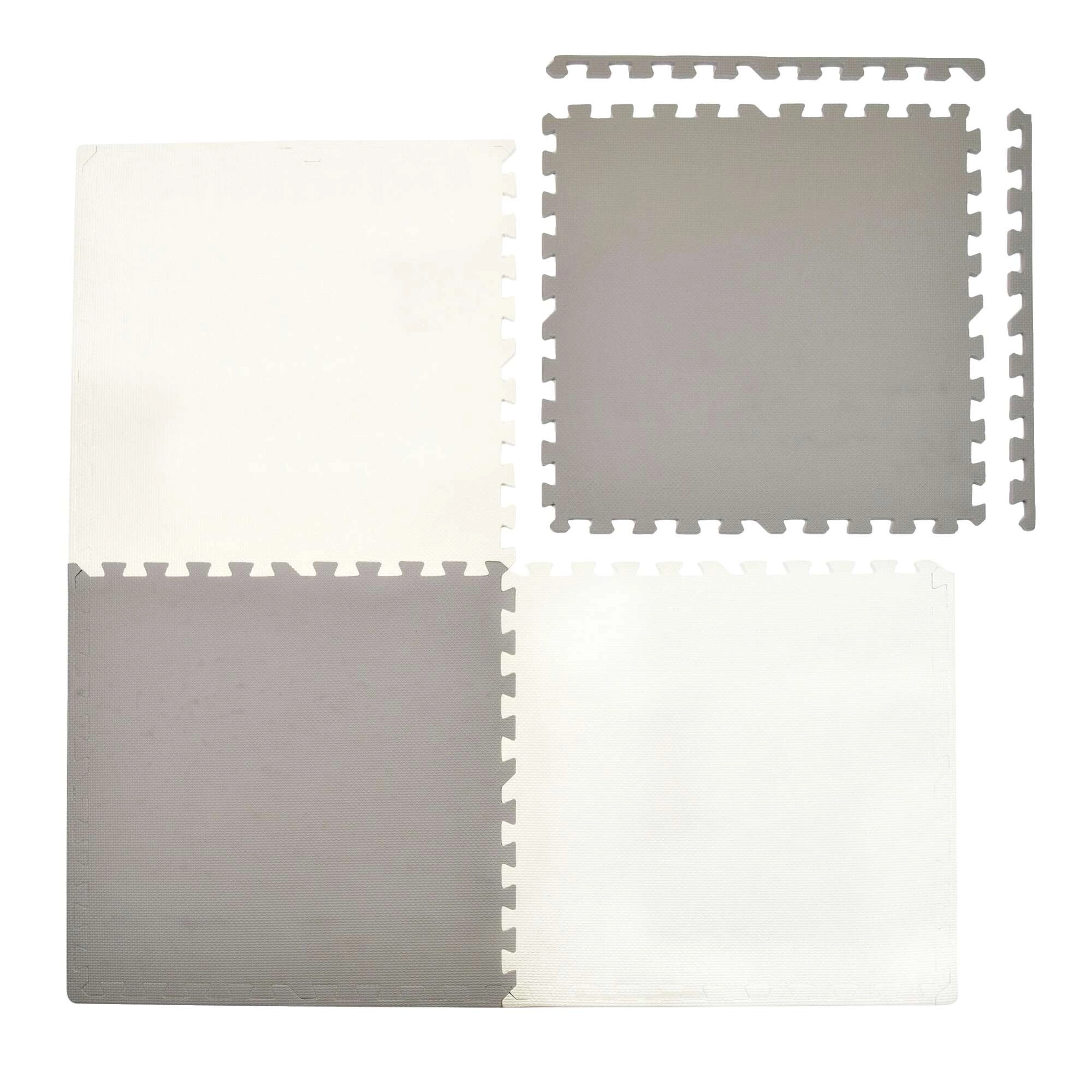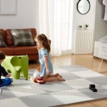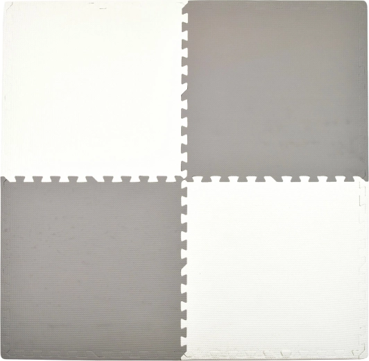 Pratico tappetino per bambini in schiuma EVA composto da grandi pezzi puzzle che creano una superficie morbida, sicura e antiscivolo per giocare, gattonare e muovere i primi passi. Il set di 4 piastrelle 60 × 60 cm con bordi si assembla facilmente fino a una dimensione di 120 × 120 × 1 cm; le piastrelle si possono collegare ed espandere con altri set. Il tappetino è impermeabile, isola dal freddo del pavimento, assorbe gli urti e si pulisce facilmente con una semplice passata.