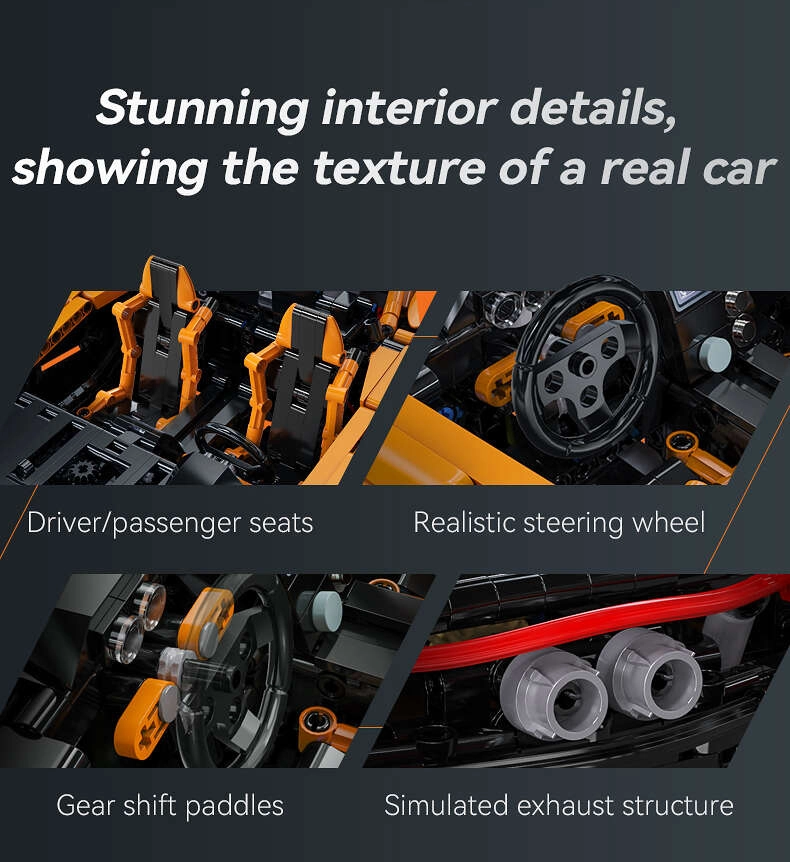 Grazie alle sospensioni indipendenti anteriori e posteriori e allo sterzo funzionante, il modello si muove in modo fluido ed è divertente sia durante la costruzione sia in esposizione. Le portiere, il cofano e il vano bagagli apribili esaltano l'esperienza autentica di costruzione e gioco. I pezzi sono compatibili con altri set CaDA e con mattoncini di altri marchi, rendendo semplice ampliare le possibilità.