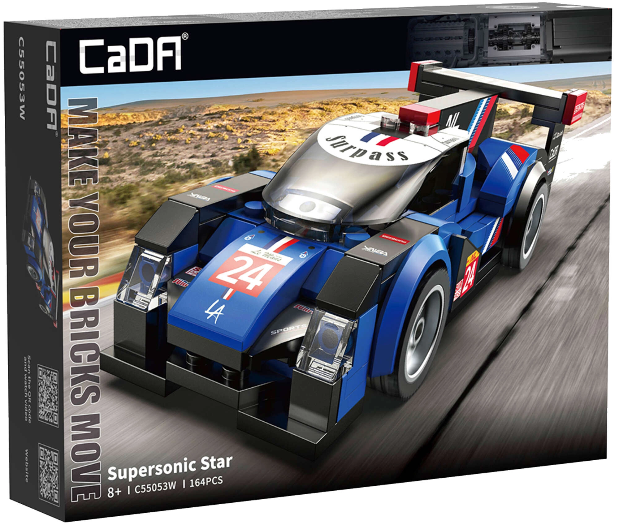 Il set di costruzione CaDA Supersonic Star entusiasmerà piccoli e grandi costruttori. La carrozzeria blu con elementi bianchi, rossi e neri appare realistica ed enfatizza l’aspetto sportivo. Grazie alle istruzioni chiare, anche i principianti possono assemblare il modello passo dopo passo.