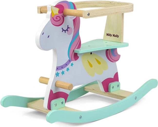 Unicorno a dondolo in legno con schienale Milly Mally Lucky