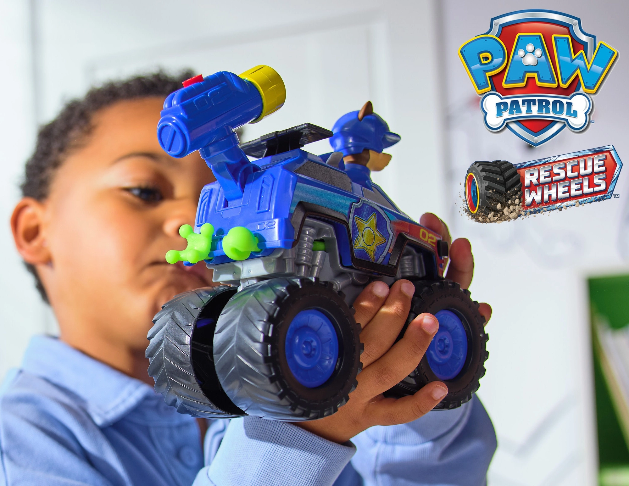 Parti per una missione di salvataggio con il fuoristrada blu di Chase della serie Paw Patrol Rescue Wheels. Struttura robusta, ruote grandi per una guida fluida e un lanciatore con gancio funzionante offrono un gioco ricco d’azione. Include la figurina di Chase (ca. 6,5 cm), che può essere posizionata sul sedile del conducente. Un accessorio ideale da abbinare ad altri set PAW PATROL.