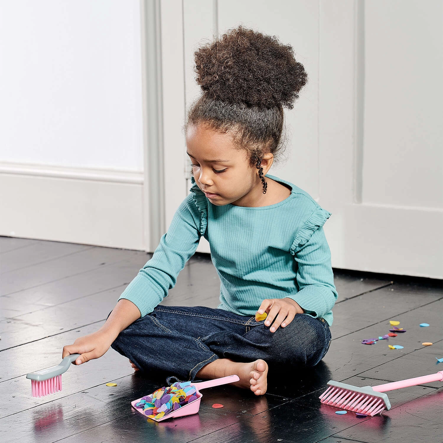 Il gioco delle pulizie favorisce le capacità di coordinazione, la responsabilità e l'autonomia. Grazie al design amichevole e al rosa vivace, i bambini ameranno pulire e capiranno facilmente come raccogliere le briciole e versarle nella paletta.