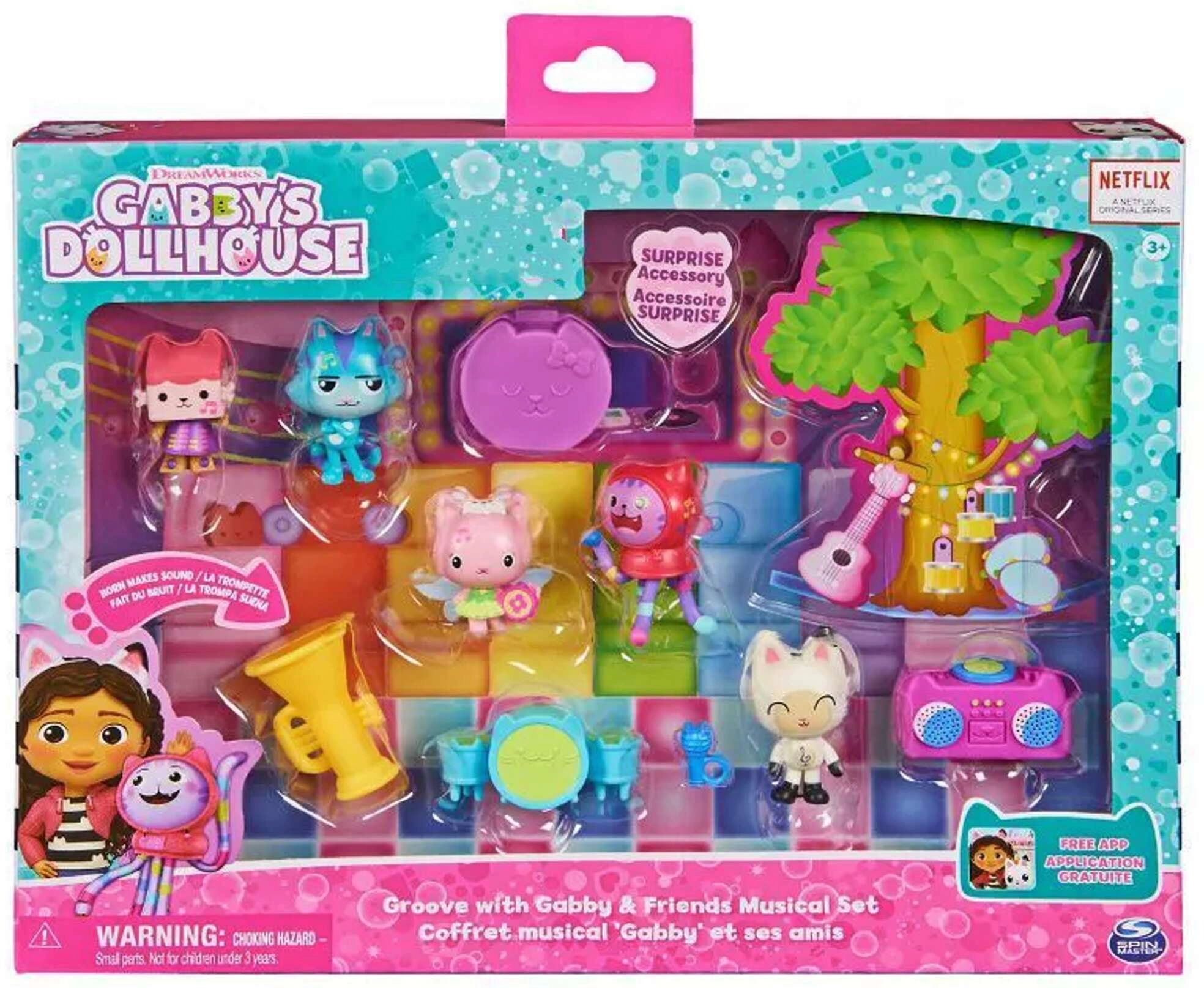 Il set musicale di GABBY'S DOLLHOUSE porta i personaggi preferiti e accessori musicali ispirati alla serie Il Dollhouse di Gabby. I bambini possono esibirsi con la band, comporre canzoncine e rivivere le scene della serie, il tutto con accessori sicuri e colorati perfetti per le manine dei più piccoli.