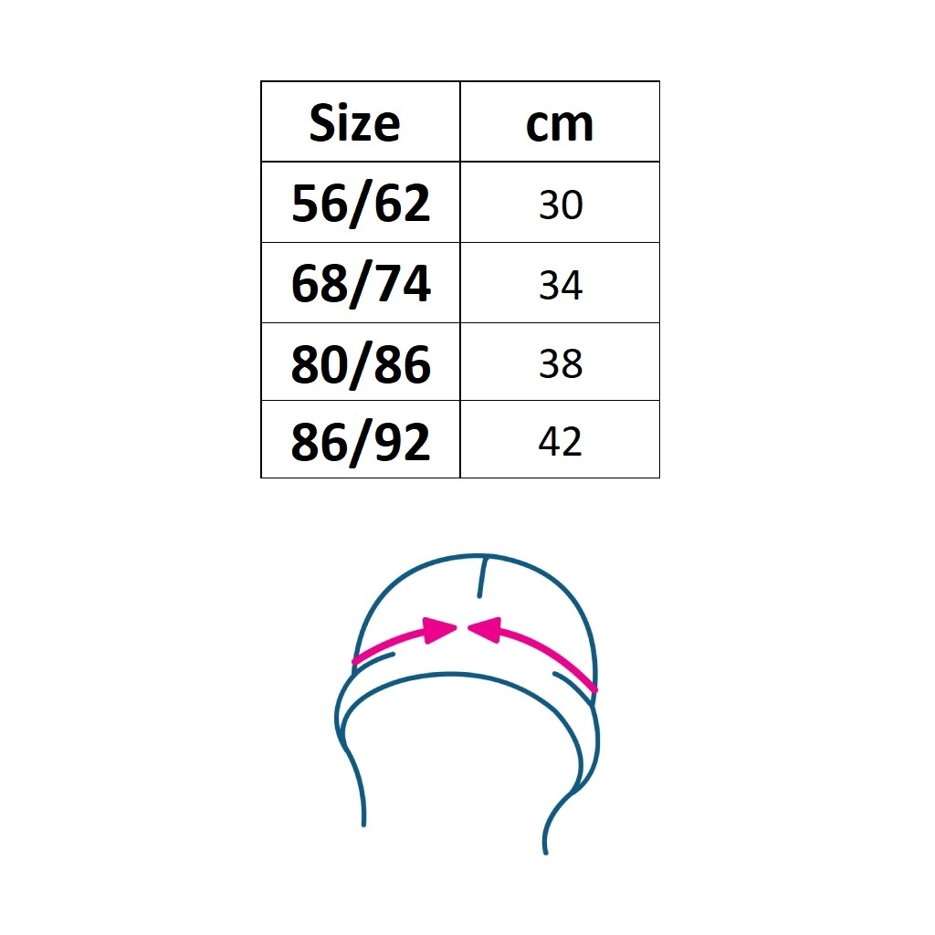 Morbido cappellino per bambini in 100% cotone per il comfort quotidiano. È delicato sulla pelle sensibile, non irrita né stringe e, grazie al bordo elastico, rimane saldamente sulla testolina del tuo bebè.