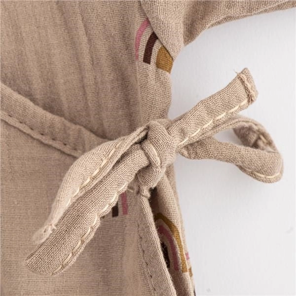 Il pratico taglio incrociato con allacciatura laterale permette di vestire il bebè senza dover passare il capo dalla testa. La chiusura inferiore con bottoni a pressione semplifica il cambio del pannolino. Inoltre, la mussola in puro cotone è resistente ai lavaggi frequenti e con il tempo diventa ancora più morbida, così te ne innamorerai subito.