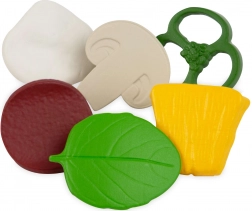 La base è divisa in 4 spicchi per un facile porzionamento e gioco di servizio. I topping solidi e colorati sono facili da impugnare e supportano la motricità fine.
