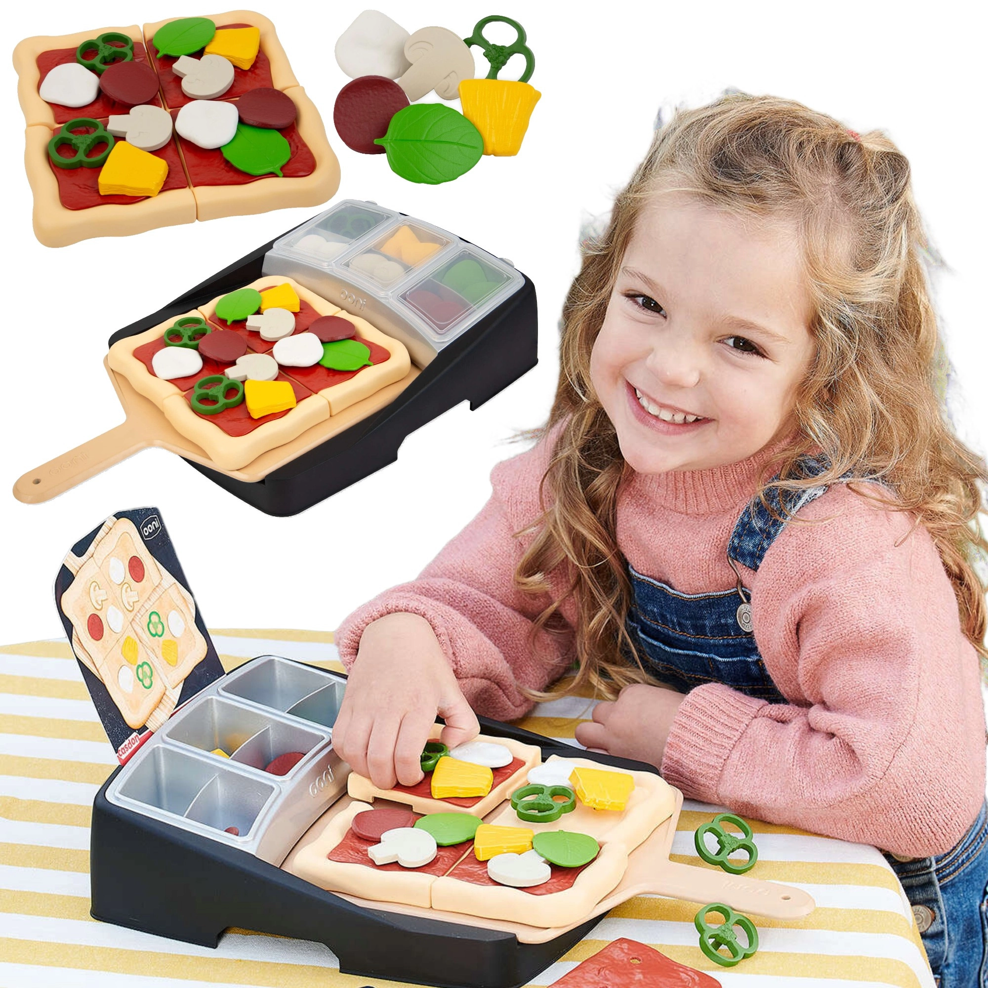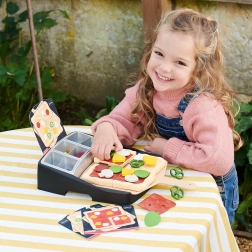 Questo moderno set pizza per bambini offre una preparazione realistica della pizza passo dopo passo. Grazie agli scomparti ordinati per gli ingredienti, i bambini scelgono facilmente cosa va sulla pizza e, seguendo le ricette incluse o la propria fantasia, creano la combinazione perfetta. I pezzi rimovibili si fissano facilmente alla base e si staccano altrettanto facilmente, permettendo di giocare all’infinito.