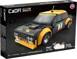 Vivi una guida dinamica con il dettagliato modello FIAT ABARTH 131 in scala 1:20. L’auto presenta livrea da corsa nero‑gialla con stampe, parafanghi larghi, antenna e abitacolo realistico. Grazie alle ruote in gomma scorre su diverse superfici e raggiunge velocità fino a 3,8 km/h.