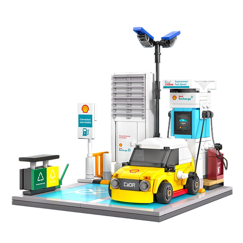 Questo set CaDA offre una mini stazione di ricarica EV SHELL autentica con auto gialla e dettagli curati. Goditi un montaggio fluido, elementi di alimentazione realistici e tante opportunità per il gioco di immaginazione – dal parcheggio, al collegamento del cavo, fino alla “ricarica” dell’auto.