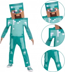 Questo costume con licenza ufficiale del popolare gioco Minecraft porta la autentica armatura di diamante turchese con la caratteristica stampa pixel. Il materiale leggero e piacevole garantisce comfort per tutto il giorno e facilità di movimento durante giochi e balli.