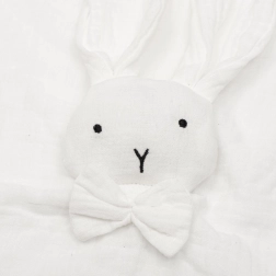 La copertina di mussola per la nanna NEW BABY Rabbit bianca è un tenero doudou che aiuta il bebè a calmarsi, sentirsi al sicuro e addormentarsi meglio. Il tessuto di mussola leggero e traspirante in cotone organico è delicato sulla pelle sensibile del bambino e garantisce una piacevole sensazione al tatto.
