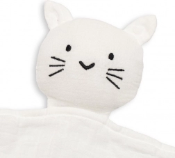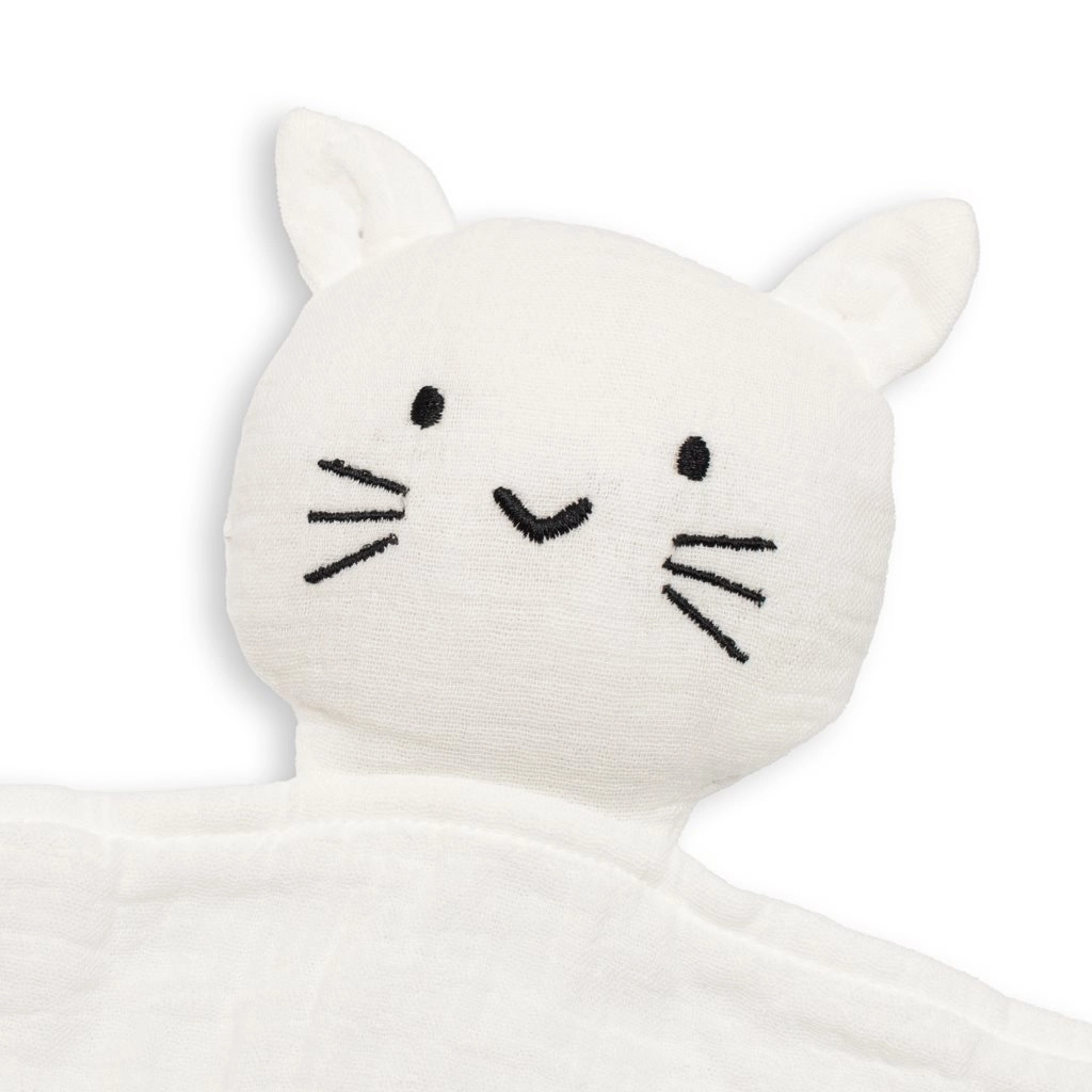 Il dou dou in mussola NEW BABY Cat in colore bianco è leggero, traspirante e piacevole al tatto. Ideale per coccolare, calmare e come compagno di viaggio. Il cotone organico è delicato sulla sensibile pelle del bambino e lo aiuta a sentirsi al sicuro.