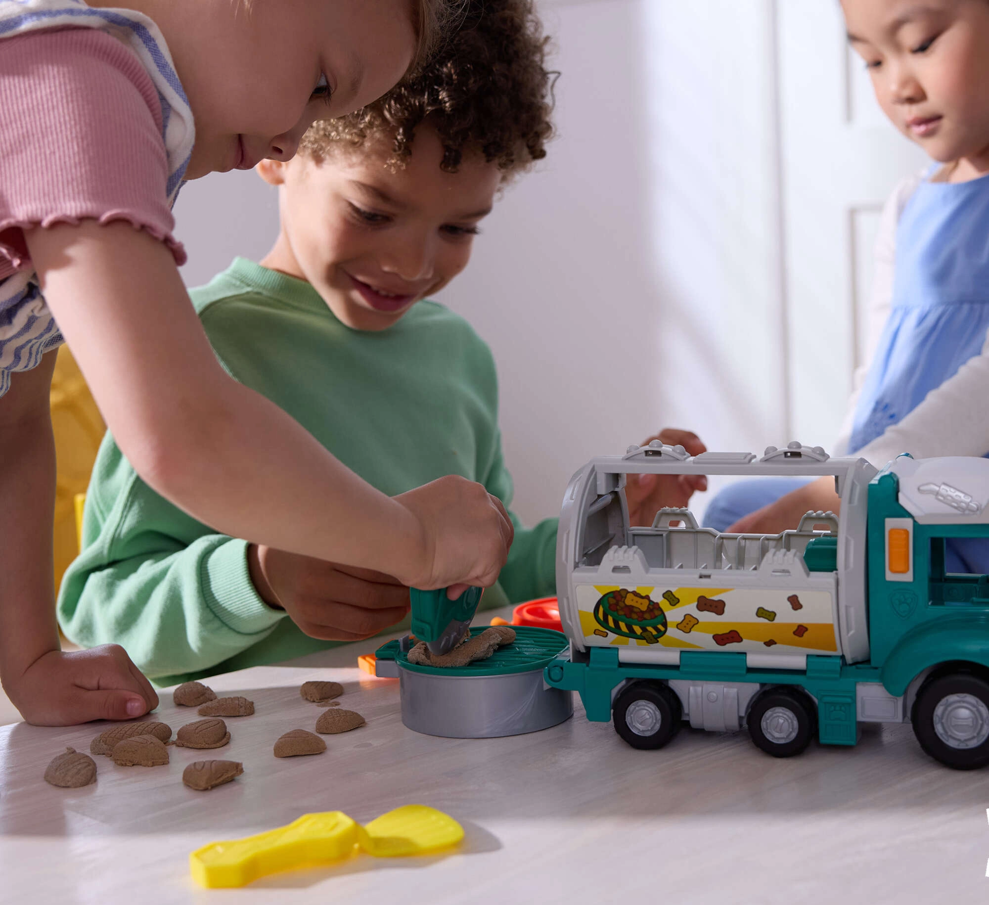 Veicolo robusto con ruote mobili, scomparti e parti apribili che offre ai bambini un gioco d’azione realistico – dal trasporto di “materiali” al servire prelibatezze.