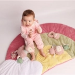 L’elegante tappetino gioco per bambini New Baby Rainbow porta nella cameretta colori delicati, design moderno e spazio sufficiente per giocare e riposare. Presenta un originale motivo arcobaleno, una fattura morbida e piacevole e include un comodo cuscino per maggiore comfort. Adatto ai neonati già dal 1° mese di vita.