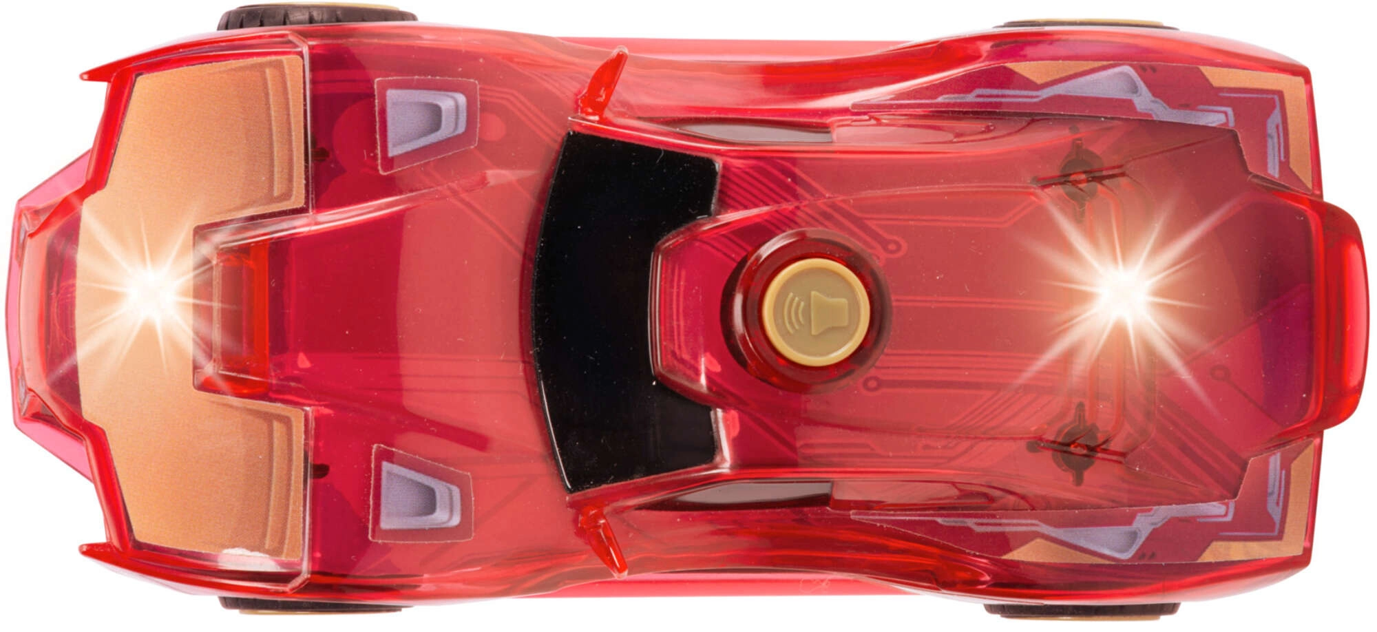 Parti per un viaggio da eroe con una compatta automobilina in un vivace rosso dal design futuristico e dettagli traslucidi. Premendo il pulsante giallo si accendono le luci LED su tutta l’auto e si attivano i suoni realistici dell’auto e del personaggio, per stimolare immaginazione e divertimento.
