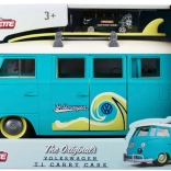 Tavola da surf rimovibile sul tetto e carrozzeria dettagliata in stile retrò T1: una gioia per piccoli surfisti e collezionisti.