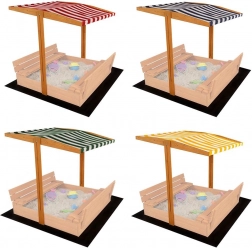 Pratico tettuccio in tela con solida struttura in legno per sabbiera 120 × 120 cm che assicura ai bambini, durante il gioco in giardino, ombra e protezione dal sole e dalla pioggerella. Grazie all’inclinazione regolabile può essere abbassato fino in fondo e coprire completamente la sabbiera proteggendola da animali e sporco. Il legno impregnato è sicuro per i bambini e resistente agli agenti atmosferici; il montaggio è semplice grazie ai fori preforati.