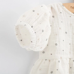 Il leggerissimo vestitino in mussola New Baby Zora per neonate conquista per comfort e stile. Ha maniche corte, taglio a A e una gonnellina delicatamente arricciata. La pratica chiusura frontale con bottoni facilita la vestizione. Realizzato in morbida mussola 100% cotone, ideale per l’estate. Il tessuto traspirante aiuta a prevenire il surriscaldamento ed è delicato sulla pelle sensibile dei bambini.