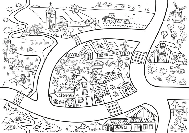 Scopri il divertimento per piccoli e grandi con questo libro da colorare davvero grande con tema villaggio. Formato 64 × 90 cm e carta da 200 g che consentono una colorazione confortevole. Adatto a pastelli, pastelli a cera e acquerelli. Acquistando tutti e sei i soggetti, puoi unirli in un'unica grande opera collegata da strade.