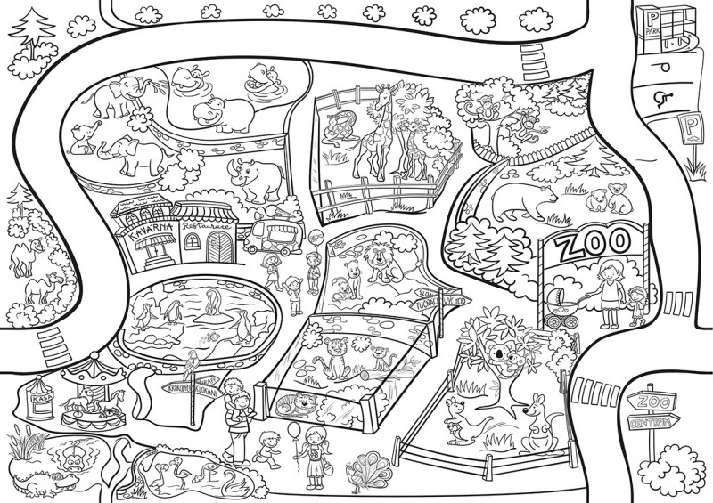 Scoprite un vero e proprio grande libro da colorare con animali dello zoo nel formato 64 × 90 cm. La carta spessa 200 g/m² è perfetta per matite colorate, pastelli a cera e acquerelli. Se acquistate tutti i 6 tipi, potete unirli in un’unica grande opera collegata da un percorso.